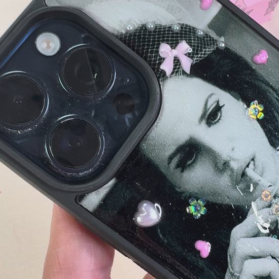 Your photo is sublimated onto the case, then decorated with hand-placed 3D charms such as bows, hearts, flowers, pearls, or small accents.